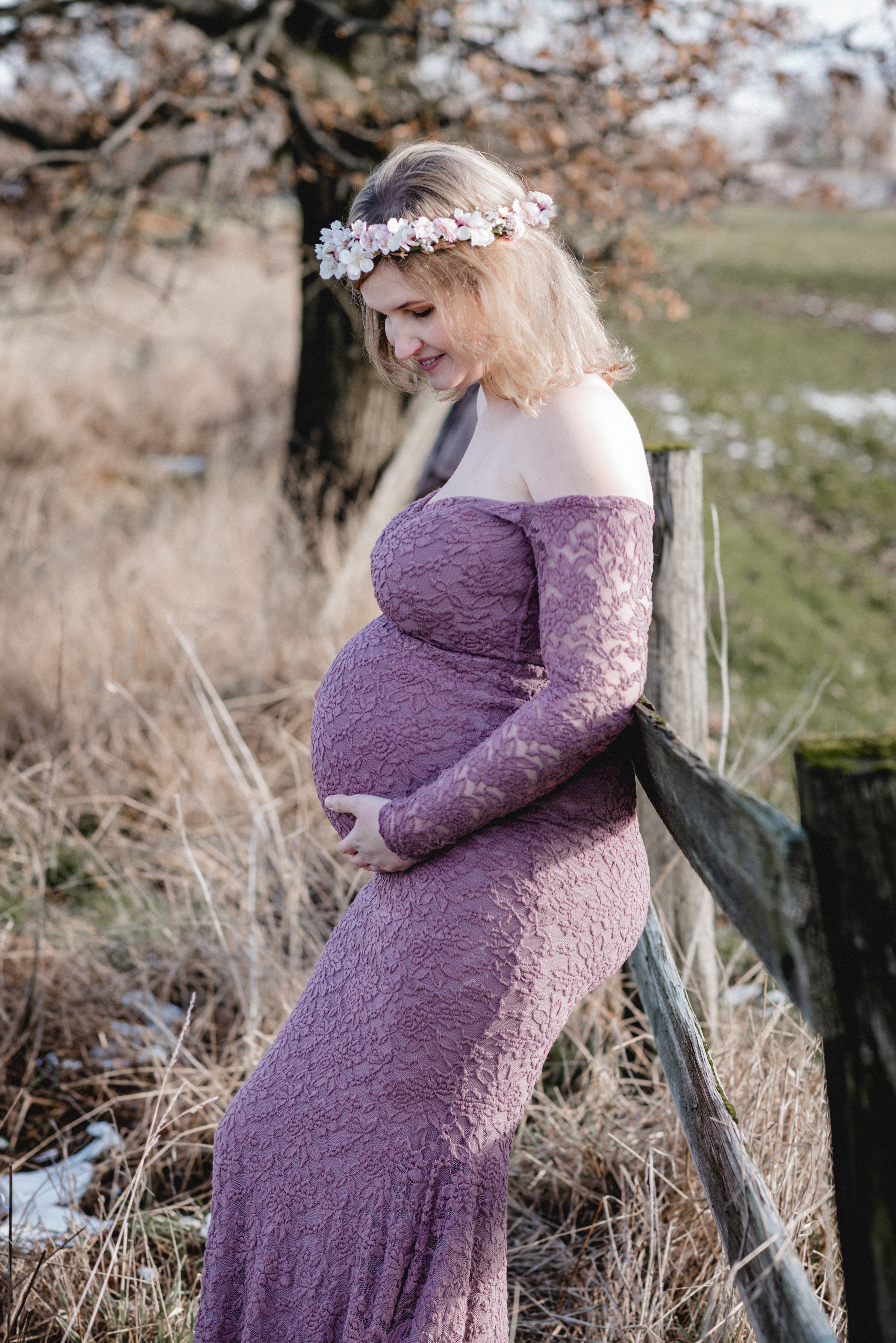 Am Wochenende gehen mein Mann und ich gerne mal eine Runde mit unserer Tochter spazieren, um einfach mal den Kopf frei zu bekommen und was anderes als die eigenen 4-Wände zu sehen. Denn ehrlich gesagt, sind wir unter der Woche doch sehr viel bei uns zu Hause – wenn auch oft im Garten, aber bei einem Spaziergang in der freien Natur kann man doch noch einmal ganz anders abschalten. Und dabei suchen wir uns auch immer mal wieder neue Ecken und Gegenden aus, denn vielleicht entdecke ich hier und dort doch mal wieder ein schönes Fleckchen für meine Outdoorshootings. So auch an einem Sonntag, ich war hin und weg von der Wiese mit seinem großen üppigen Baum und dem alten Holzzaun. Und dieser hübschen Schwangeren gefiel diese auch sehr gut, so dass mein nächstes Babybauchshooting mit ihrer kleinen Familie also dort stattfand 🙂
